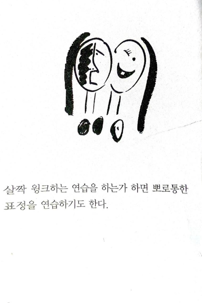살짝 윙크하는 연습을 하는가 하면 뽀로통한