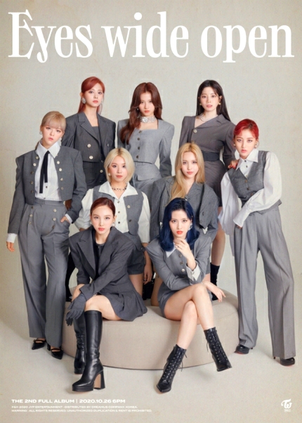 JYP엔터테인먼트는 10월 12일 0시 공식 SNS 채널을 통해 트와이스 정규 2집 'Eyes wide open'(아이즈 와이드 오픈)의 단체 티저 사진 3장을 게재!!